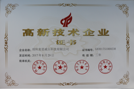 - 2013年8月,绵阳麦思威尔科技有限公司正式成立。
